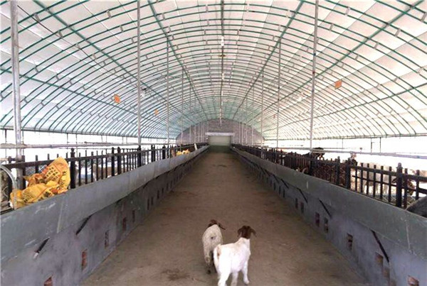 二、在養殖圈上搭建塑料暖棚。以木桿、高粱秸稈等支撐物作棚架,上邊覆蓋留有通氣孔的塑料薄膜,而后將塑料薄膜四周用泥沙、草捆等壓嚴,這樣,可提高舍內溫度,達到保暖防寒目的。